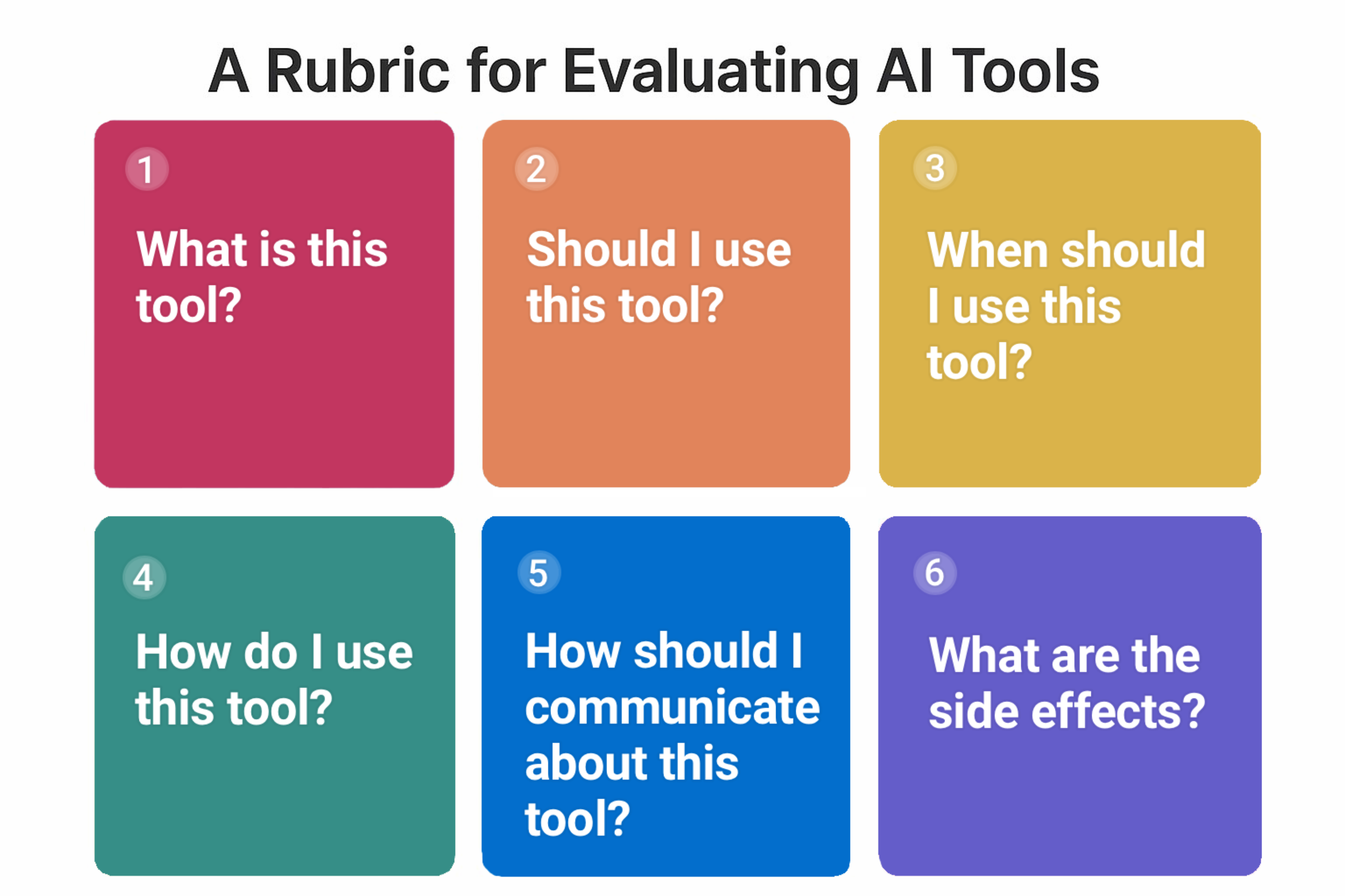 The rubric doesn’t fix the problems with AI - hallucination, bias, etc. - but it DOES help HUMANS clarify the downsides and decide what to use and when to use it.